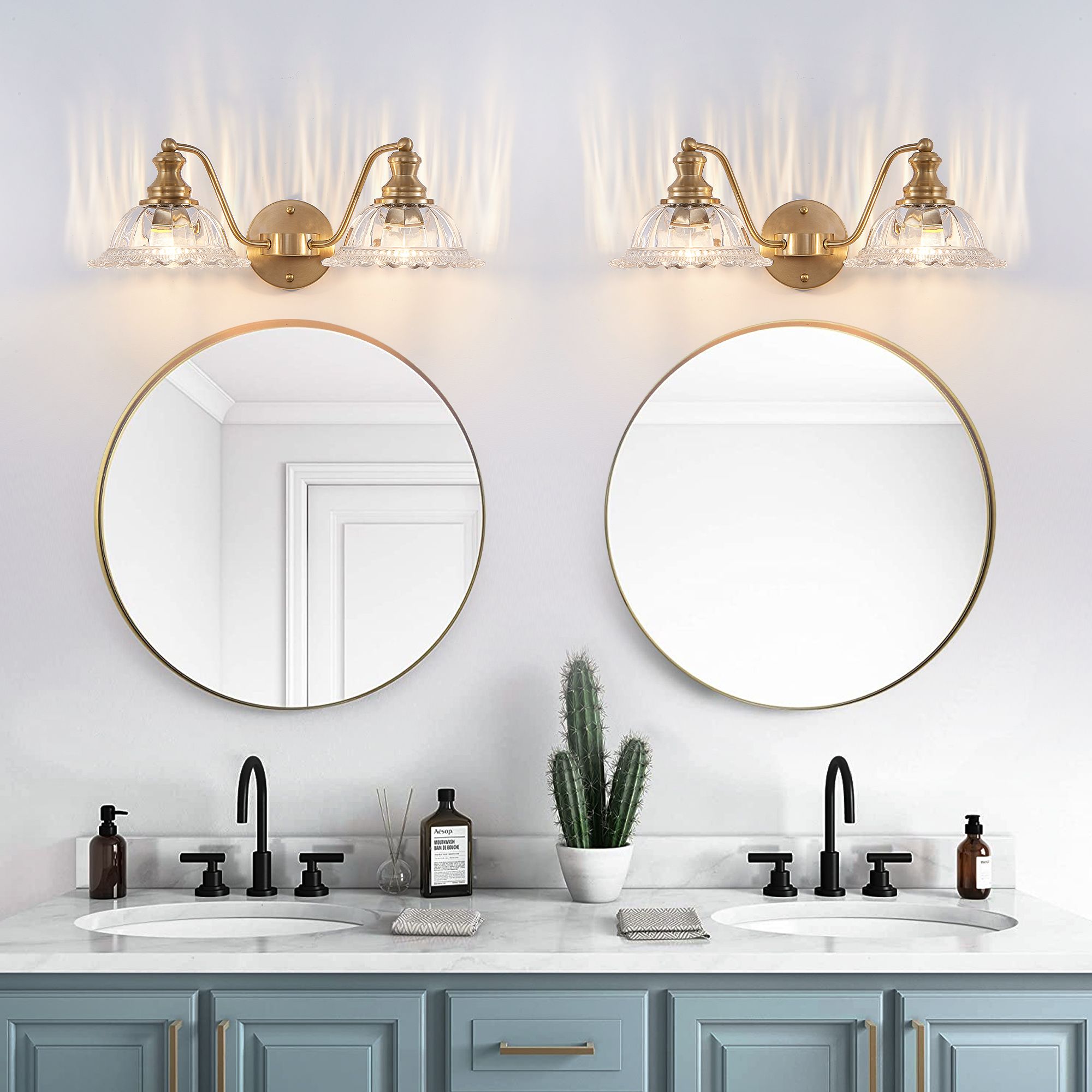 3.2-Light Fixture: Equipped with two lights (bulbs not included), this sconce offers ample lighting, ideal for brightening up your bathroom, hallway, or bedroom with elegant illumination.