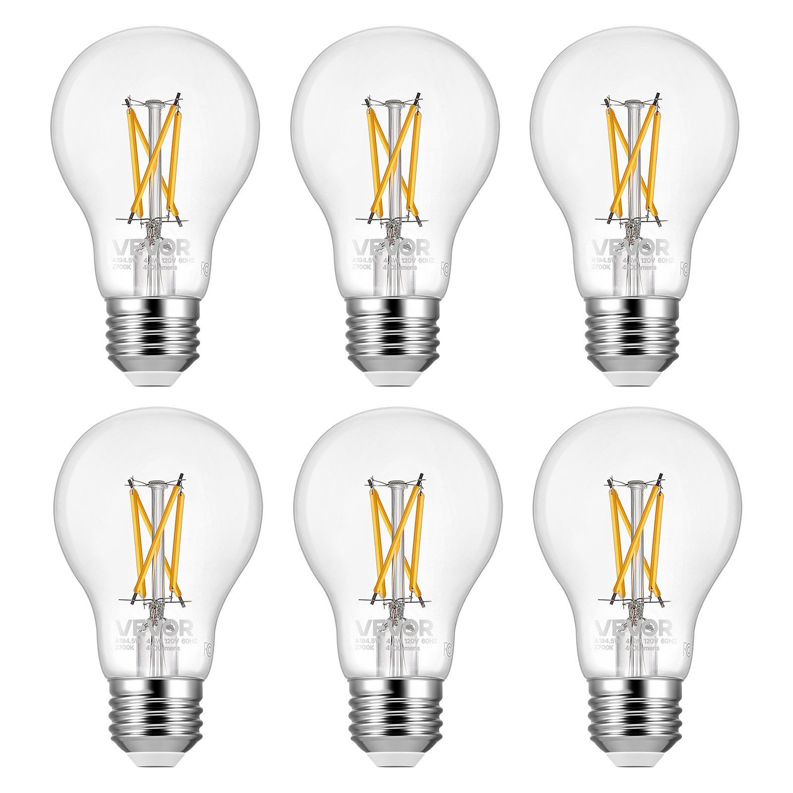 1.Warm Light Vintage Bulb: This set of 6 bulbs features a 2700K soft yellow light and a vintage Edison-style design. The high Color Rendering Index enhances colors, effortlessly creating a warm and cozy home atmosphere. It's the ideal choice for upgrading your home lighting