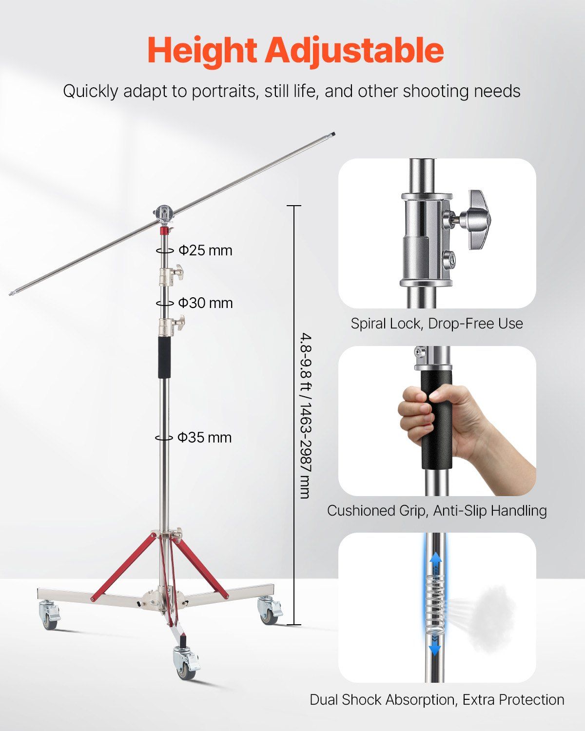 VEVOR Heavy Duty Light Stand with Casters, Max Height 10.5 ft/320 cm, Adjustable Tripod Stand with Stainless Steel, Photography Wheeled Base Stand VEVOR Heavy Duty Light Stand with Casters, Max Height 10.5 ft/320 cm, Adjustable Tripod Stand with Stainless Steel, Photography Wheeled Base Stand VEVOR Heavy Duty Light Stand with Casters, Max Height 10.5 ft/320 cm, Adjustable Tripod Stand with Stainless Steel, Photography Wheeled Base Stand